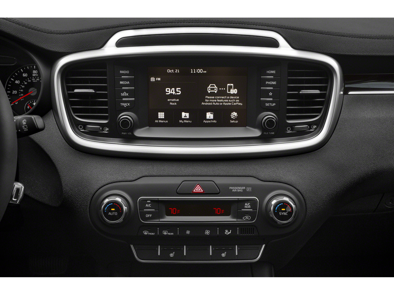 - Radio: AM/FM/MP3 Audio System -inc: 7" touch-screen color display, 6 speakers, support for Android Auto and Apple CarPlay, USB/auxiliary input jacks, 2 USB charging input jacks and Bluetooth connectivity