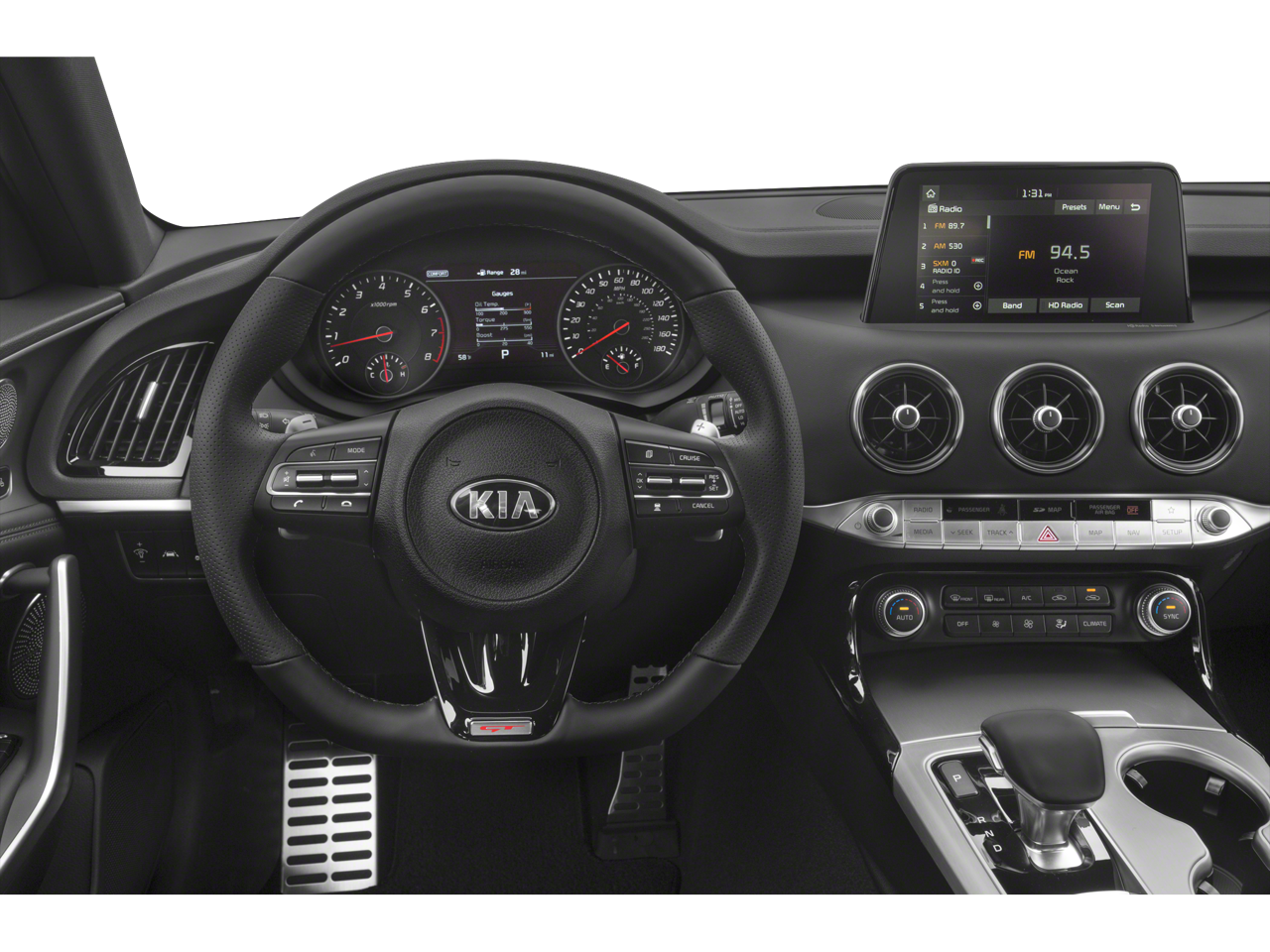 - Radio: AM/FM/MP3/HD/SiriusXM Audio System -inc: 7" color touch-screen display, 6 speakers, UVO eServices infotainment system, support for Android Auto and Apple CarPlay, USB input, Bluetooth® wireless connectivity w/voice recognition, wireless phone charger and steering-wheel-mounted controls