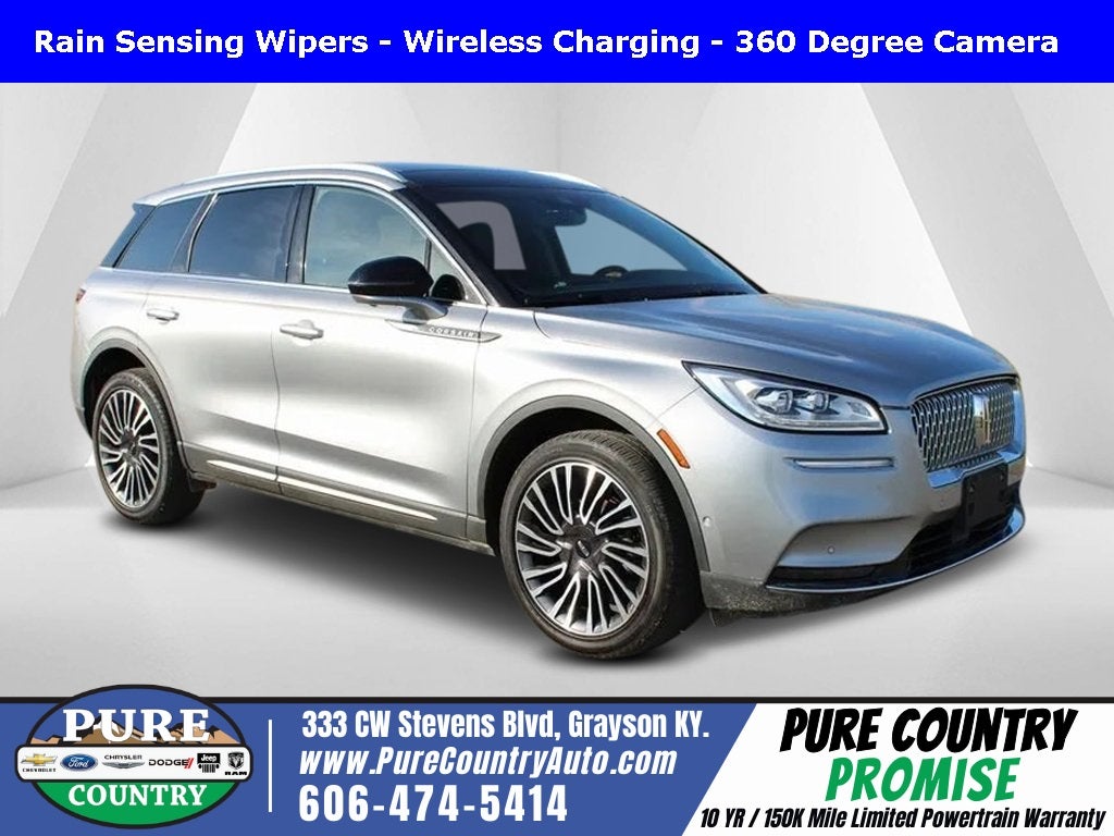 This Lincoln Corsair has many features and is well equipped including, 14 Speakers, 19 Bright Machined Aluminum Wheels, 3.81 Axle Ratio, 4-Wheel Disc Brakes, ABS brakes, Air Conditioning, Alloy wheels, AM/FM radio: SiriusXM, Auto High-beam Headlights, Auto tilt-away steering wheel, Auto-dimming door mirrors, Auto-dimming Rear-View mirror, Automatic temperature control, Brake assist, Bumpers: body-color, Compass, Delay-off headlights, Driver door bin, Driver vanity mirror, Dual front impact airbags, Dual front side impact airbags, Electronic Stability Control, Emergency communication system, Four wheel independent suspension, Front anti-roll bar, Front Bucket Seats, Front Center Armrest, Front dual zone A/C, Front fog lights, Front reading lights, Fully automatic headlights, Garage door transmitter: HomeLink, Heated door mirrors, Heated front seats, Illuminated entry, Knee airbag, Leather steering wheel, Low tire pressure warning, Memory seat, Navigation System, Occupant sensing airbag, Outside temperature display, Overhead airbag, Overhead console, Panic alarm, Passenger door bin, Passenger vanity mirror, Power door mirrors, Power driver seat, Power Liftgate, Power moonroof: Panoramic Vista Roof, Power passenger seat, Power steering, Power windows, Premium Leather Heated Comfort Seats, Radio data system, Radio: Revel Audio System w/HD Radio & MP3, Rear anti-roll bar, Rear reading lights, Rear seat center armrest, Rear window defroster, Rear window wiper, Remote keyless entry, Security system, SiriusXM Radio, Speed control, Speed-sensing steering, Speed-Sensitive Wipers, Split folding rear seat, Spoiler, Steering wheel memory, Steering wheel mounted A/C controls, Steering wheel mounted audio controls, SYNC 3 Communications & Entertainment System, Tachometer, Telescoping steering wheel, Tilt steering wheel, Traction control, Trip computer, Turn signal indicator mirrors, Variably intermittent wipers. Thank you for taking the time to look at this terrific 2021 Lincoln Corsair. For that unequaled Pure Country buying experience, stop in to see our inventory of vehicles, shop online at www.purecountryauto.com, or call us today at (606) 474-5414 for more information. Price excludes tax, title, registration, $699 document fee and dealer added accessories. While we make every effort to ensure the data listed here is correct, there may be instances where some of the factory rebates, incentives, options or vehicle features may be listed incorrectly as we get data from multiple data sources. PLEASE MAKE SURE to confirm the details of this vehicle with dealer.